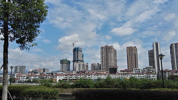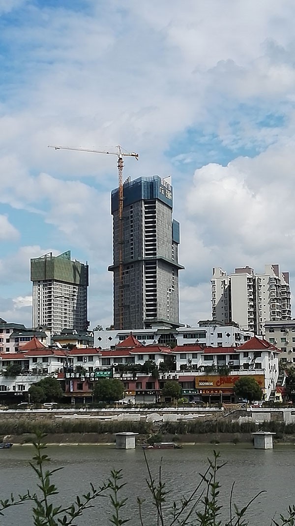 广元市图腾广场,是广元市最高的建筑,位于东街与北街交汇处,在嘉陵江的另一侧看广元主城区,海博春天如鹤立鸡群,高耸云端。